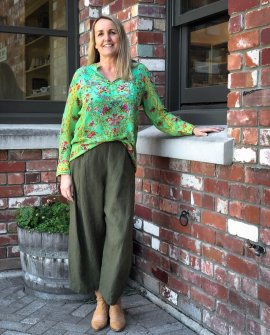 This beautiful silk blouse by Inoa is one of those stunning pieces you can wear anywhere and you'll be guaranteed that all eyes will be drawn to you. It is light as air and the colours are simply divine. In our photos Debbie is wearing it with a pair of linen pants by Banana Blue but this gorgeous blouse could also be worn with shorts or a simple skirt or even over the top of a bikini.