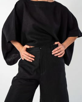 • Fabric Description:  a classic weave linen in a block colour black . A textured & luxurious hand feel with a slight slub throughout.