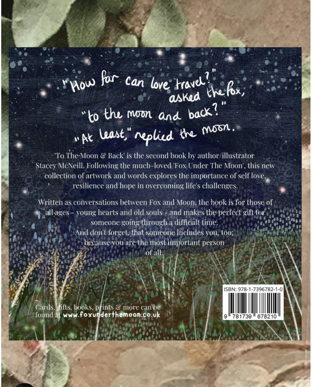 'To The Moon & Back' is the second book by author/illustrator Stacey McNeill. Following the much-loved 'Fox Under The Moon', this new collection of artwork and words explores the importance of self love, resilience and hope in overcoming life's challenges. Written as conversations between Fox and Moon, the book is for those of all ages - young hearts and old souls - and makes the perfect gift for someone going through a difficult time. And don't forget, that someone includes you, too; because you are the most important person of all.