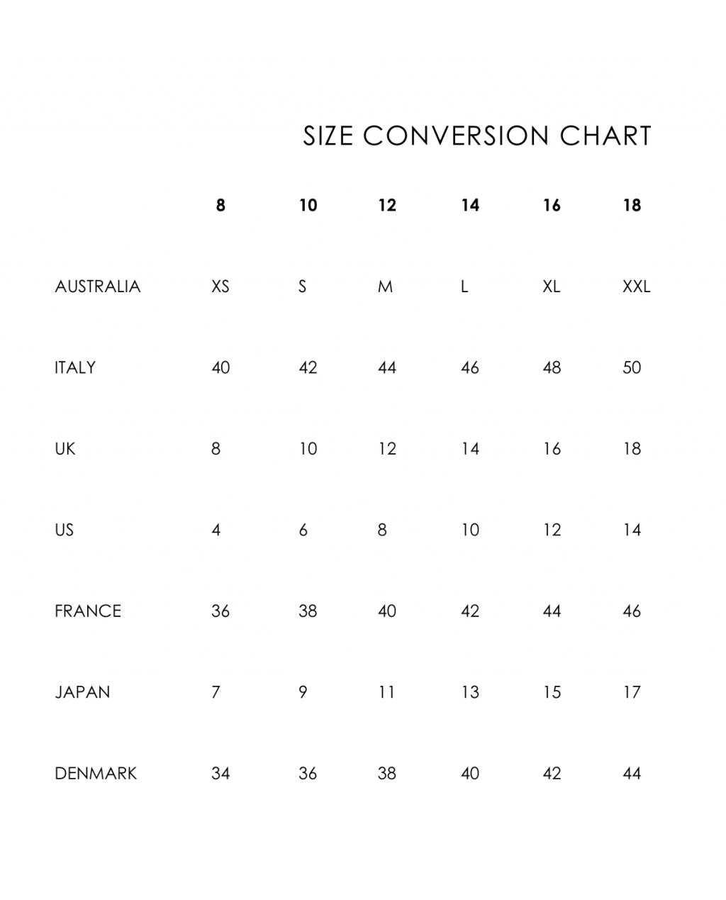 Size Chart and Conversion Chart in the image carousel.