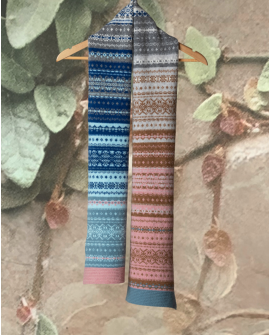 ERIBE'S Alloa Ava Scarf features Scottish fairisle patterns in a kaleidoscope of colours. The Alloa Ava scarf is designed to match ERIBE'S collection and to go beautifully with an array of outfits. The scarf features ribbed edges and a soft finish. The scarf is made from 100% soft merino lambswool and is made in Scotland.