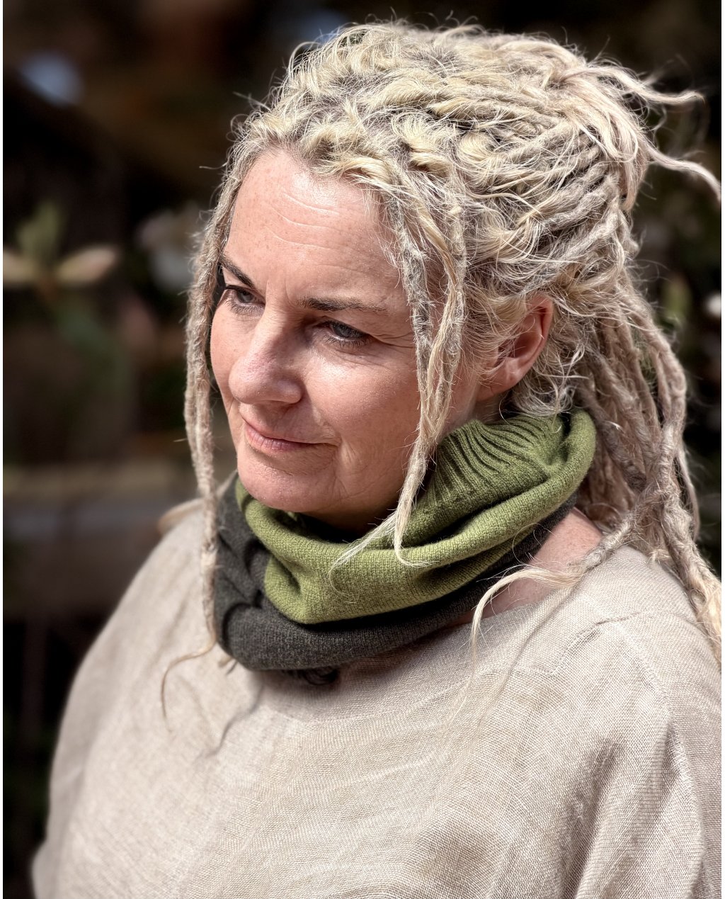 ERIBÉ | Bowden Colour Block Snood | Green Bean
