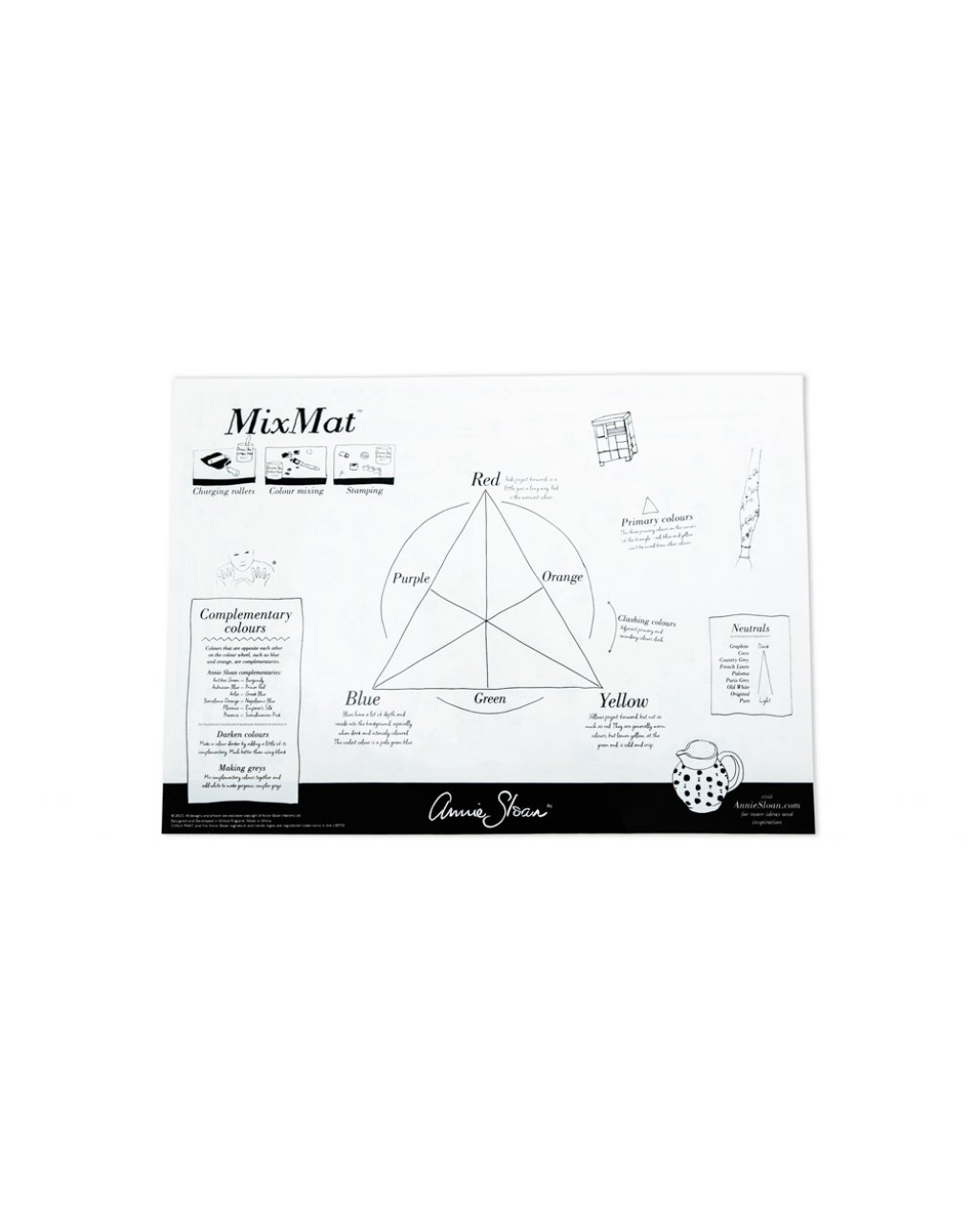 The MixMat has Annie's signature colour triangle on one side, and illustrations from her sketchbook on the reverse.