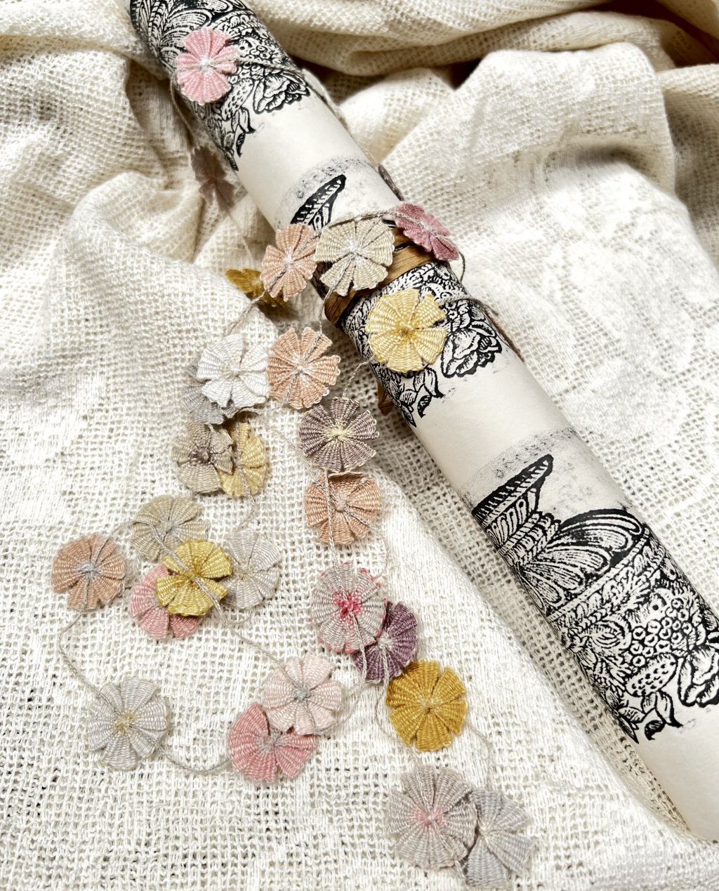 Sophie Digard | Pastel Daisy Chain Necklace | Crochet Linen | Long