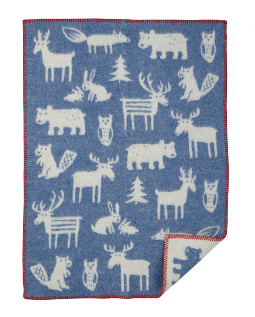 Keep baby warm in the winter months with this gorgeous blue 100% lambs wool blanket by Klippan featuring reindeer, bears, bunnies and owls and contrasting red edge stitching . The definition of lambs wool is the first shearing of the sheep that is no older than six months. During later years we have also been able to produce throws in ecologic lambs wool. The ecologic lambs wool is totally free of pesticides and no chemicals or antibiotics have been used during the breeding of the sheep.