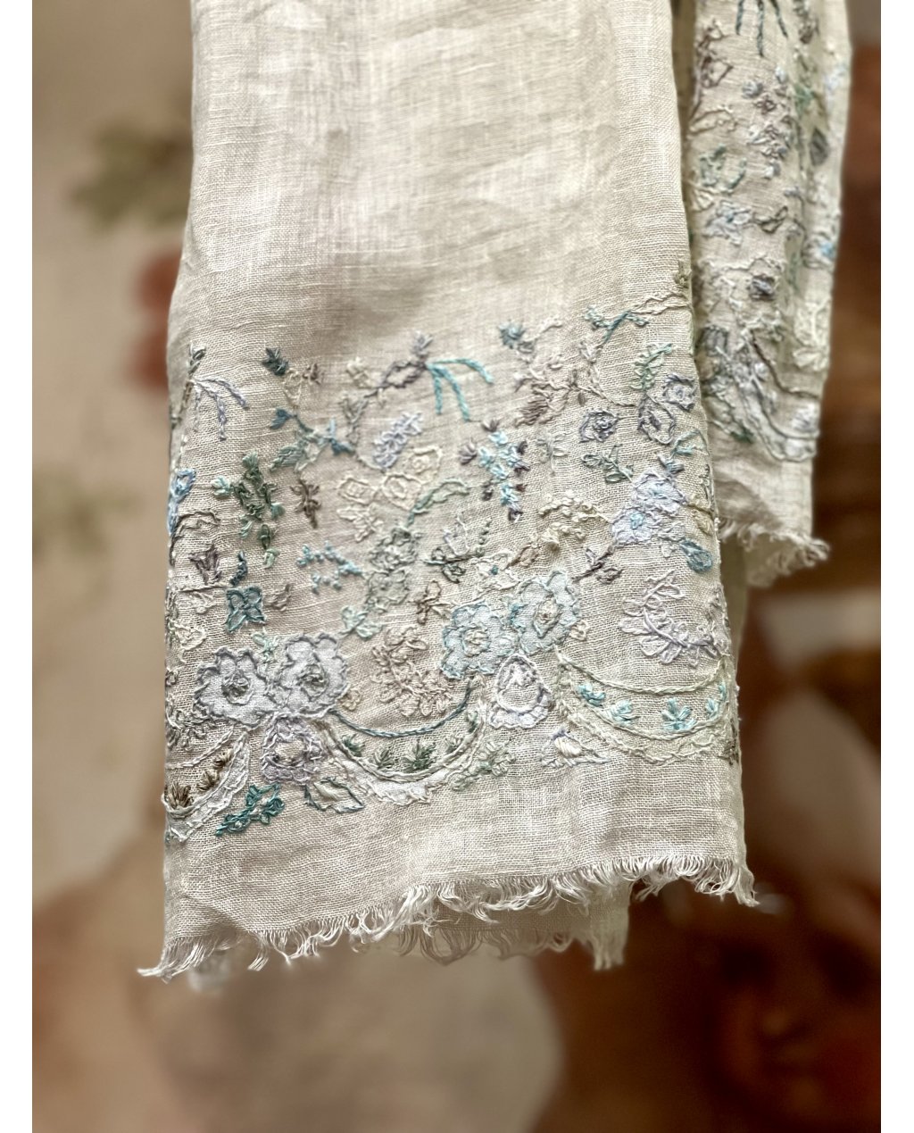 Sophie Digard | Linen Scarf with Floral Embroidery