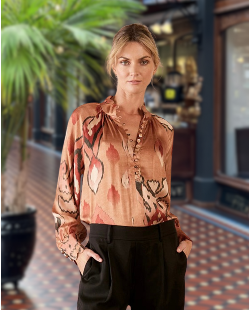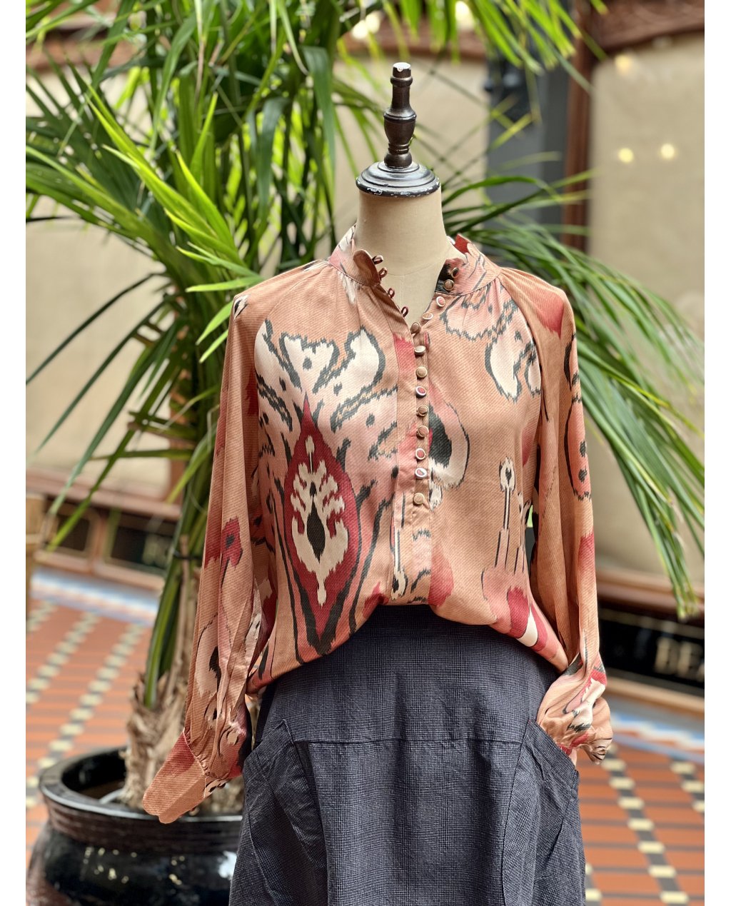 The Dreamer Label | Alisha Ikat Blouse | 100% Silk | Toffee