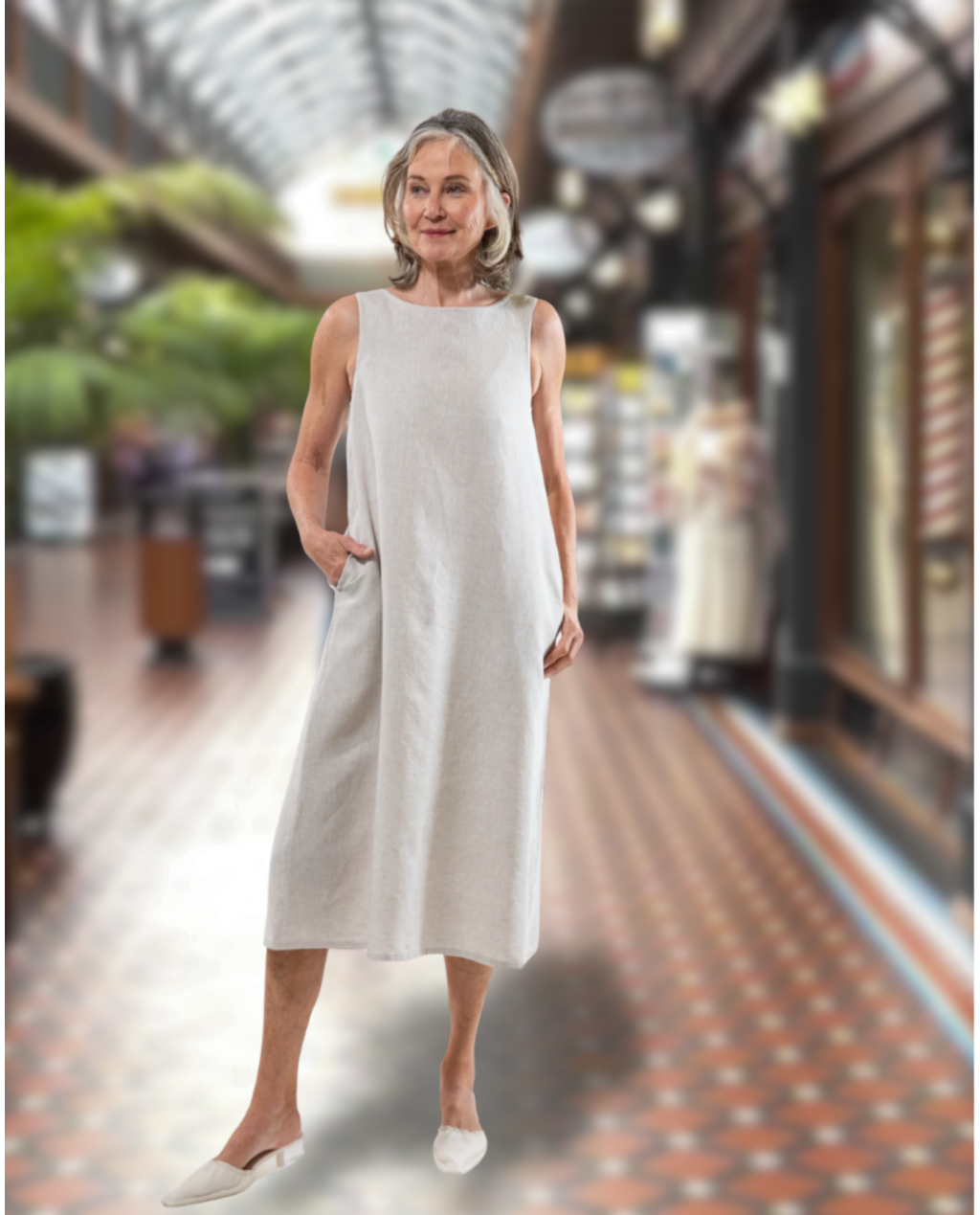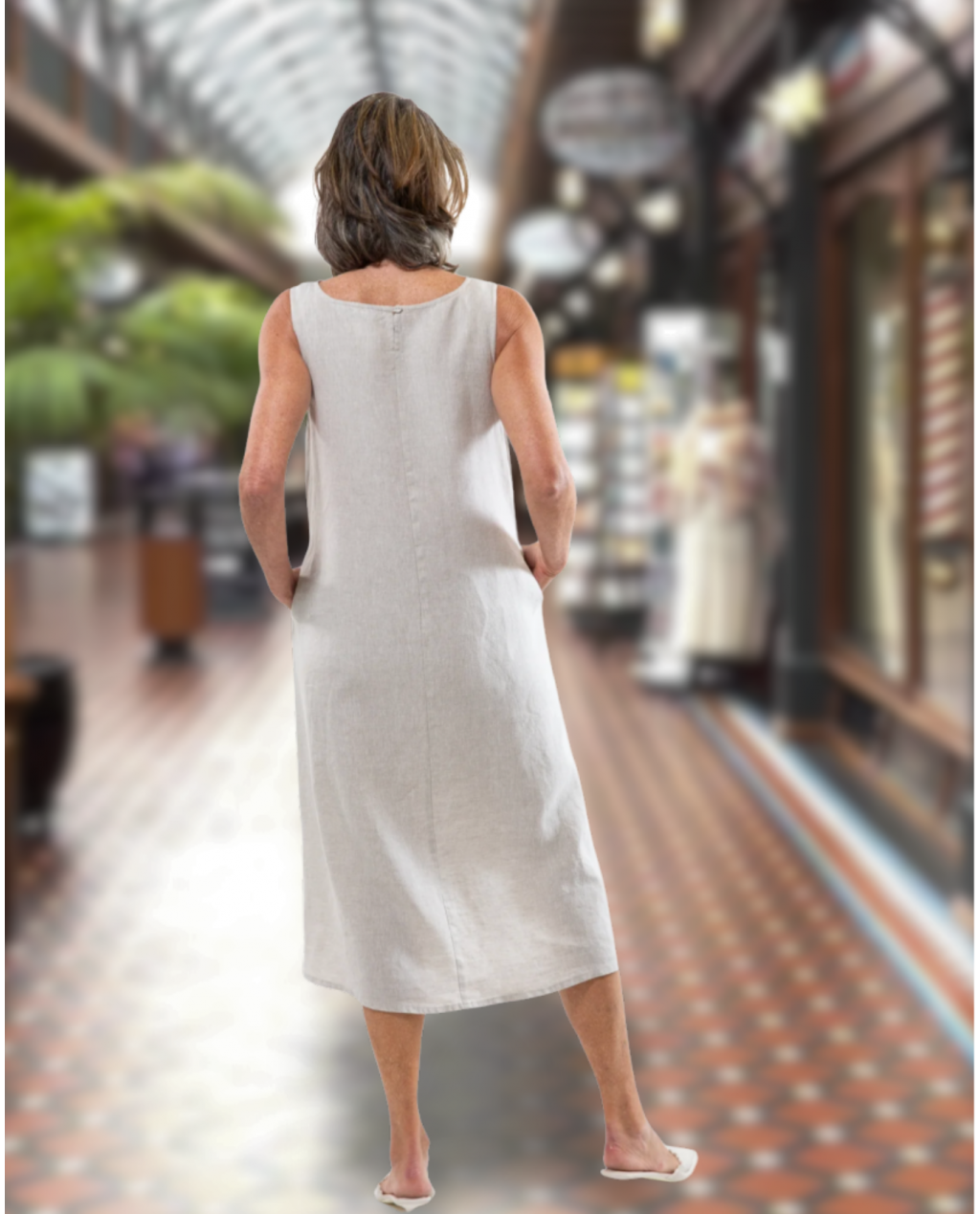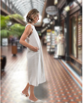 The Asher Dress is made from 100% linen (180gsm) and makes an excellent base layer for many Eva’s Sunday tops and jackets - and, indeed, for tops and jackets of many of the other labels at Cosi Fan Tutte. The Asher Dress is wide cut over the shoulders, ensuring comfort and ample coverage of bra and cami. The top features side seam pockets, a gently rounded neckline and button & loop closure at the back. The Asher Dress hits mid-calf on most women but is easily shortened due to the simple rolled hem. The model is 179cm tall and wears a size XS.