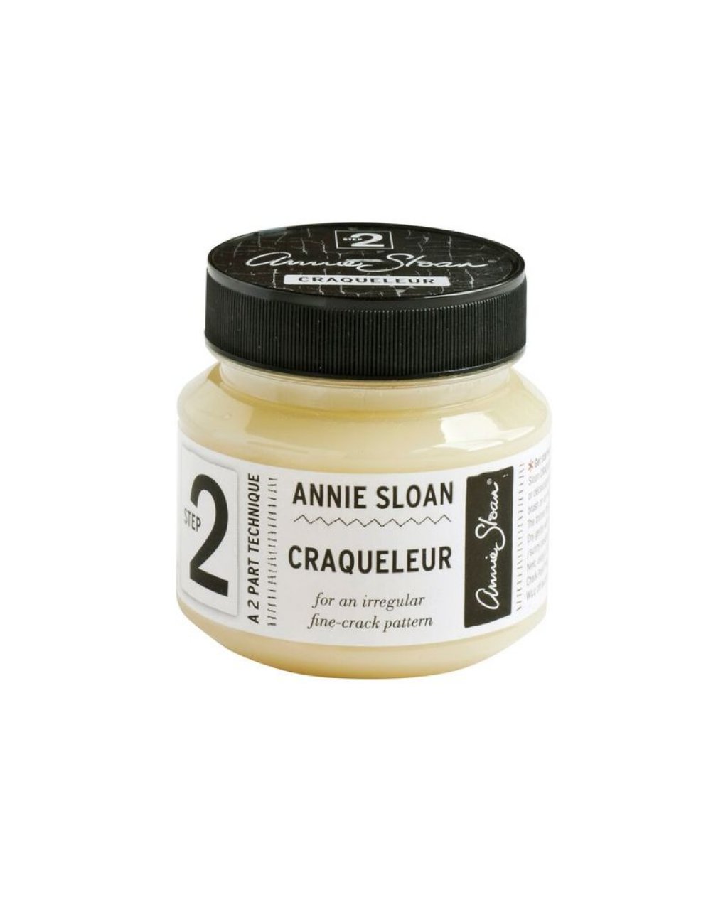 Annie Sloan’s unique Craqueleur is a two-part application that gives an authentic cracked varnish finish ⎯ just like on an Old Master! Step 1 is the base and with Step 2 you can control the size of the cracks ⎯ the thinner you apply it, the smaller the cracks. If you like, you can then highlight the cracks with Dark Chalk Paint® Wax.