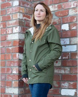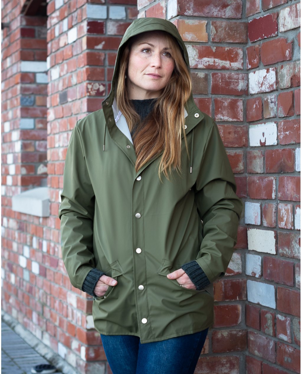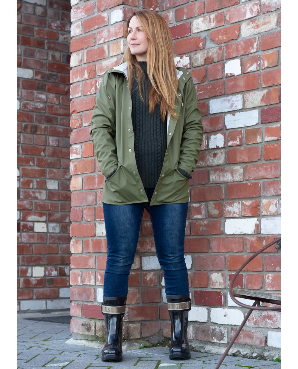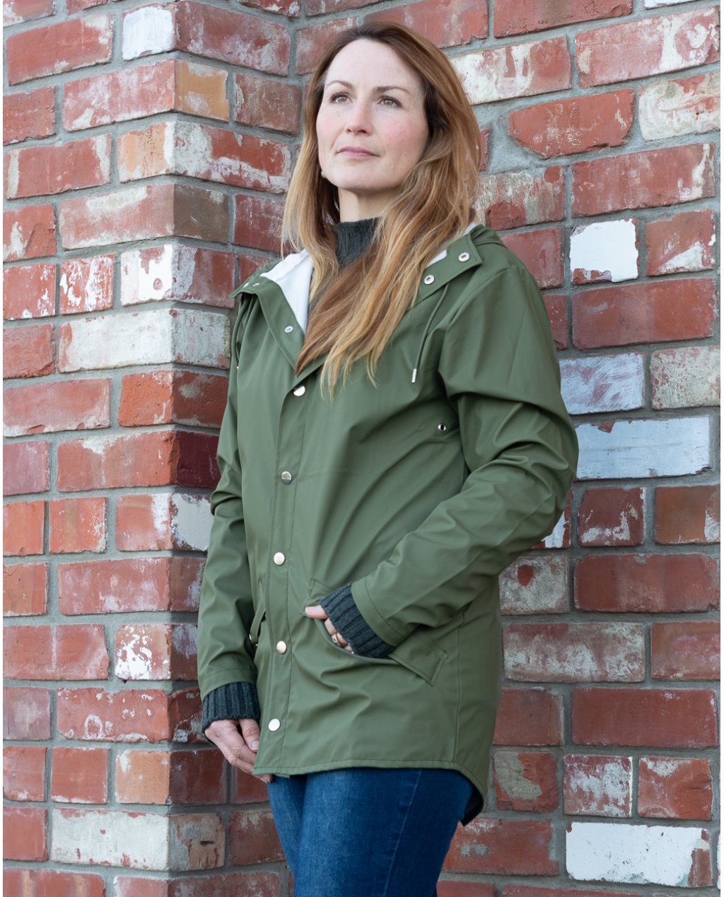 The 'Jacket' is functional and casual with a contemporary unisex rain jacket silhouette. It’s a basic style - an urban version of a conventional jacket - with classic rainwear details such as the storm shield and snap buttons at the sleeve hem. The jacket also features double-welded slanting pocket flaps, a French front placket with snap buttons, adjustable hood and cuffs and ultrasonically welded seams to keep you warm and dry no matter how hard the rain is pelting down. The fabric is lightweight with a matte surface and a soft hand feel, very pliant so it’s easy and comfortable to wear. This Rains Jacket is a deliciously muted green called 'Olive'.