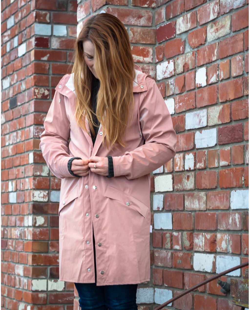 The Rains ‘Long Jacket’ is a longer version of the urban Jacket and both are essential Rains classics. Made from a water-resistant lightweight fabric with a matte finish, this casual unisex rain jacket has an elegant appearance. Designed in a casual raincoat silhouette, it has double welded slanting pocket flaps, a front placket with snap buttons, adjustable hood and cuffs, ventilation under the storm shield, a fish tail and ultrasonically welded seams to keep you dry no matter how the rain pelts down. This jacket is in a warm pink called 'Blush'. The Long Jacket is also available in Faded Blue, Rock, Olive, Slate, Ice, Off-White and Taupe.