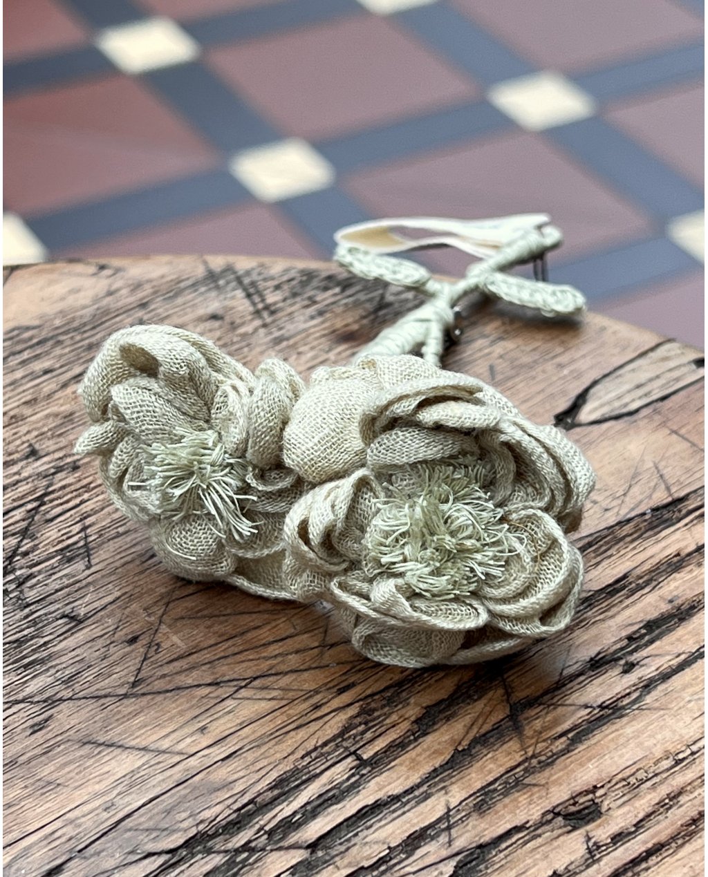 Sophie Digard | Hand-crafted Double Flower Brooch | Linen | Ballgreen