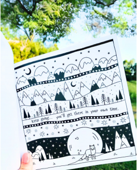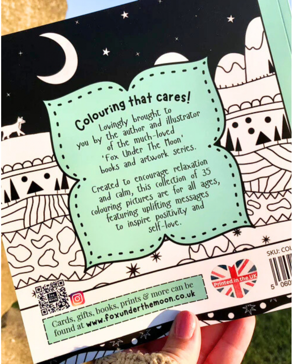 Created to encourage relaxation and calm, this collection of 35 colouring pictures are for all ages, featuring uplifting messages to inspire positivity and self-love.