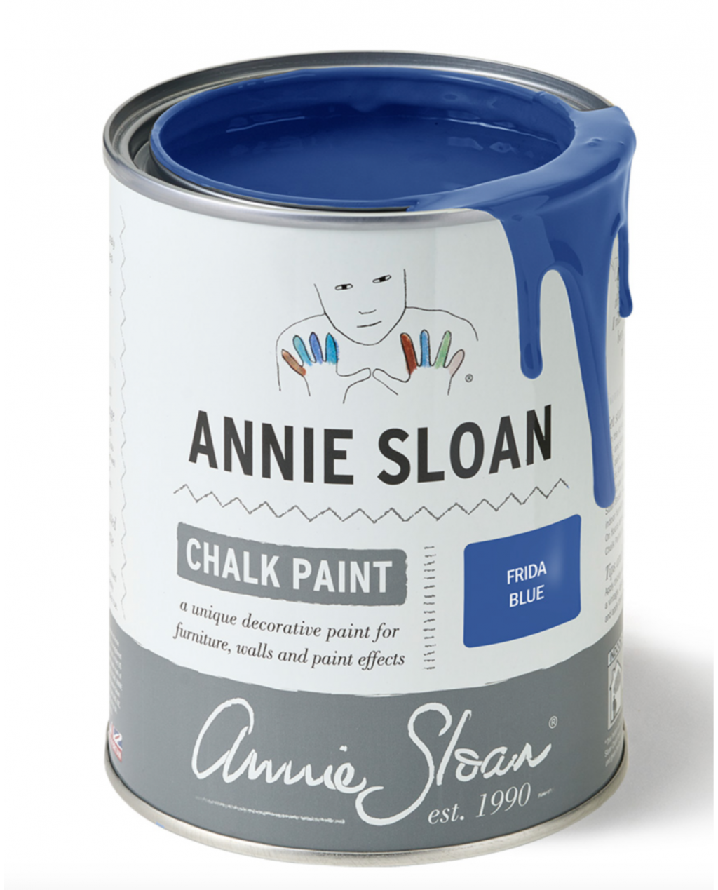 Frida Blue : Frida Blue is a bright, energising and exciting Chalk Paint colour inspired by Frida Kahlo’s “Casa Azul” in Mexico City. Use to channel Frida’s verve, joy, and passion for colour.. Frida Blue comes in a 1 litre tin and a 120 ml project pot - please select above - under 'Available Options' - which size you would like.