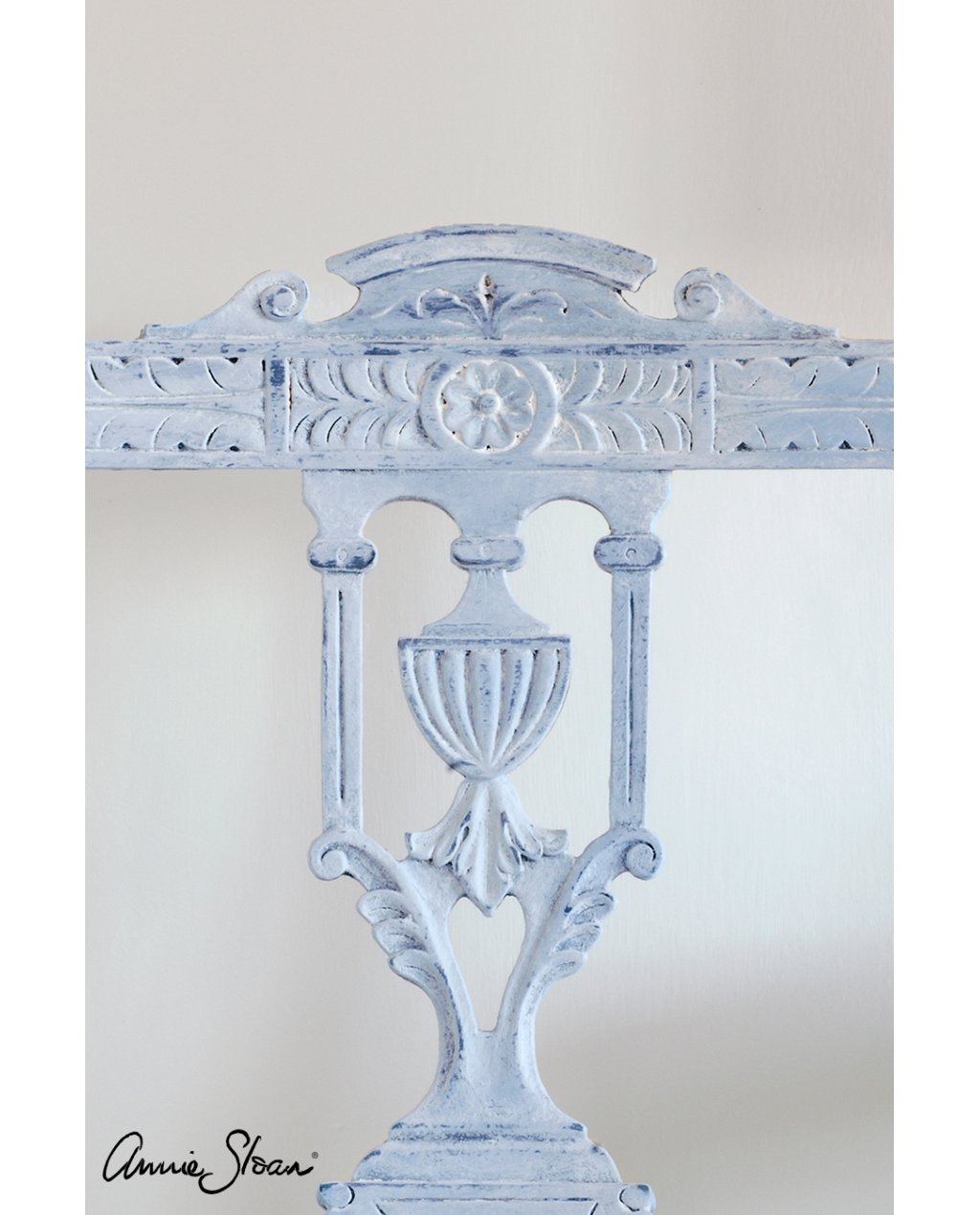 Annie Sloan Waxes are the perfect partner for Chalk Paint. Her waxes are used for protection and durability and to give a beautiful mellow finish to painted furniture, cabinets, and walls. You can easily apply one or two coats of wax with a brush or cloth. The chair back in the second image shows the effect of white wax over the top of Old Violet Chalk Paint.